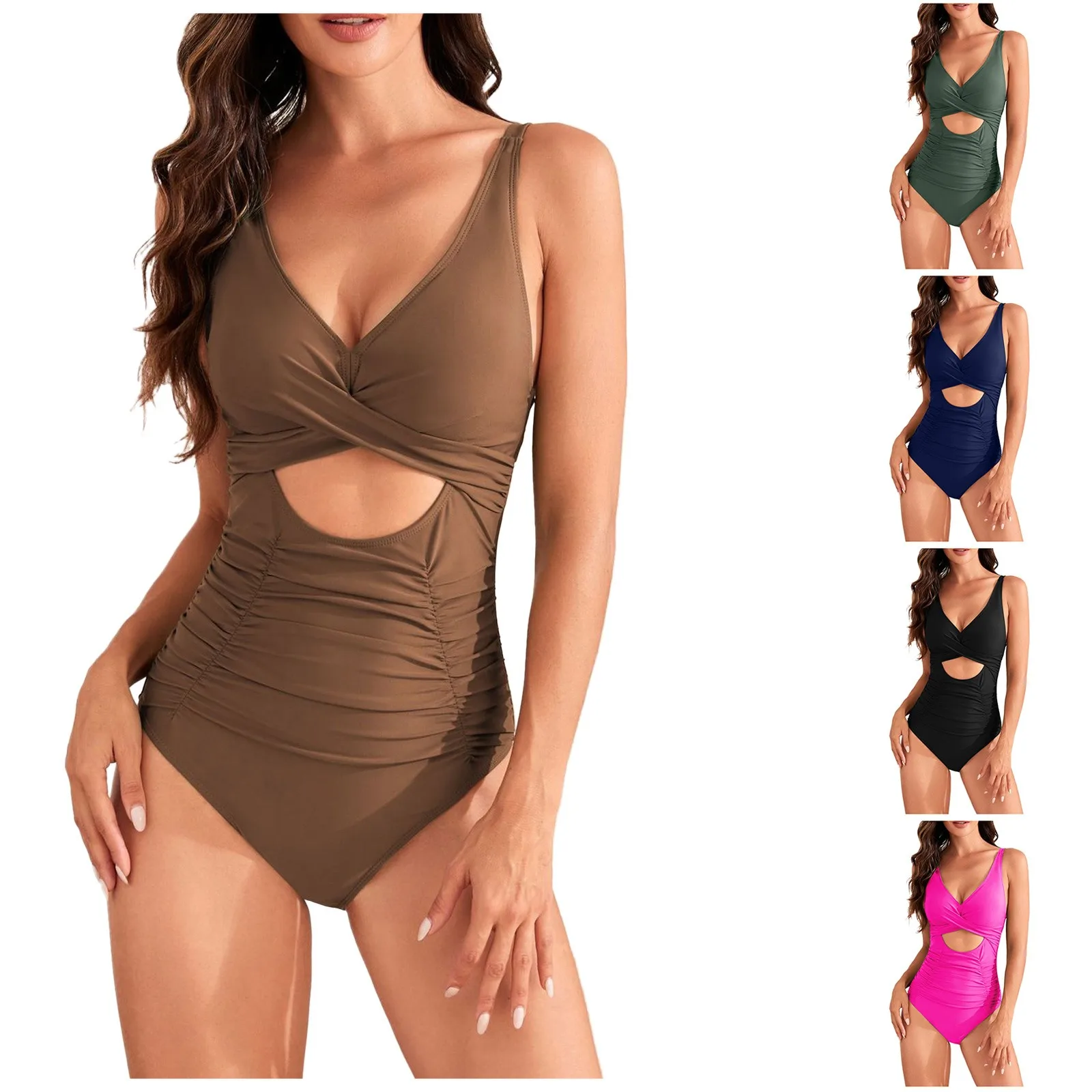 swimsuit solid color pack swimsuit pleated high waist swimsuit